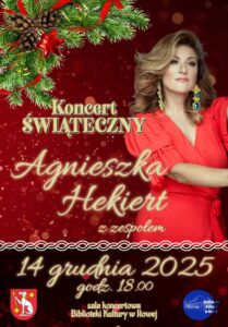 14 grudnia– godz. 18.00 Świąteczny koncert Agnieszka Hekiert z zespołem- magia głosu i wyjątkowy klimat świąt (wstęp wolny)