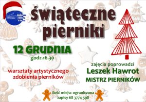 18 grudnia– godz. 16.00 Warsztaty tworzenia dekoracji świątecznych (zapisy w sekretariacie)
