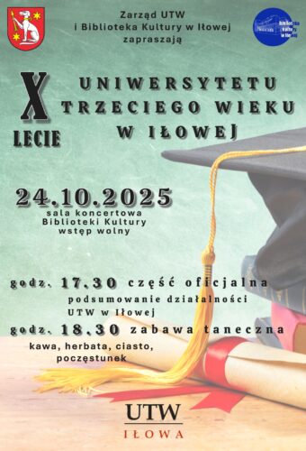 Już w ten piątek Biblioteka Kultury w Iłowej i Zarząd UTW zapraszają na Jubileusz X-lecia Uniwersytetu Trzeciego Wieku.