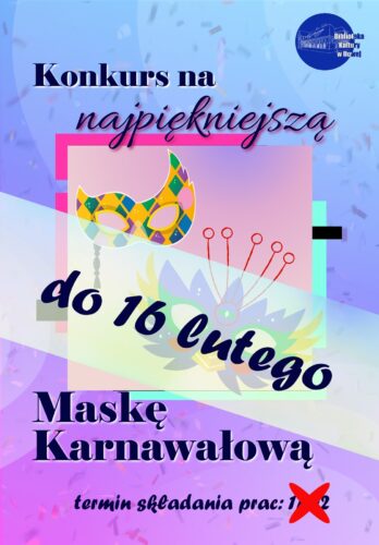 Do naszego konkursu dołączą jeszcze dzieci z sekcji plastycznej „Kreatywne Dzieciaki”, dlatego wydłużamy czas oddawania prac. Komisja konkursowa przyjmuje maski do poniedziałku, do godz. 15.00 O terminie wręczenia nagród poinformujemy